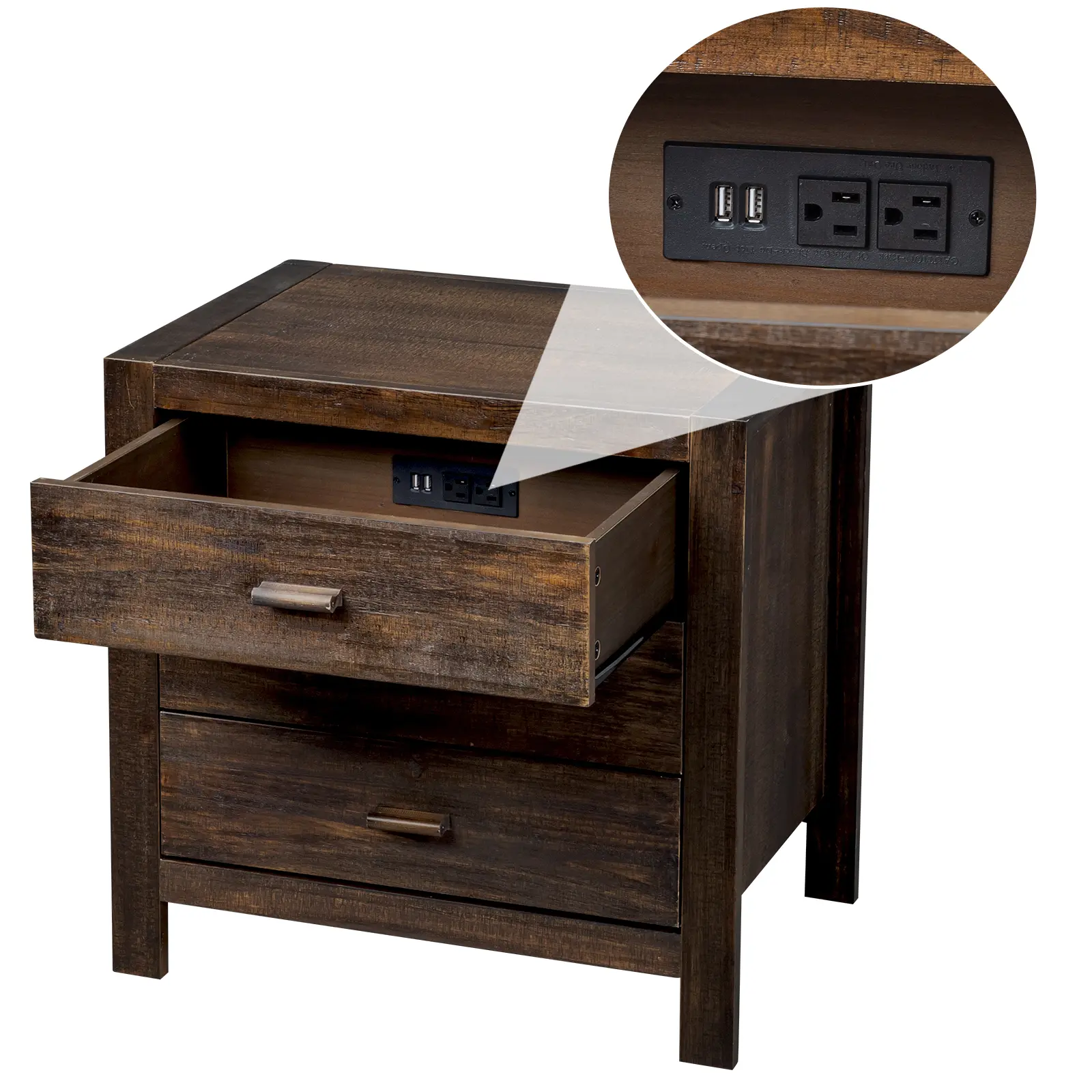 With Charging Station: Come with 2 USB ports and 2 charger outlets in drawer back side. The charging options allow you to conveniently and simultaneously charge the electronic devices such as smartphones, tablets, laptops, or e-readers while you sleep or relax in bed.