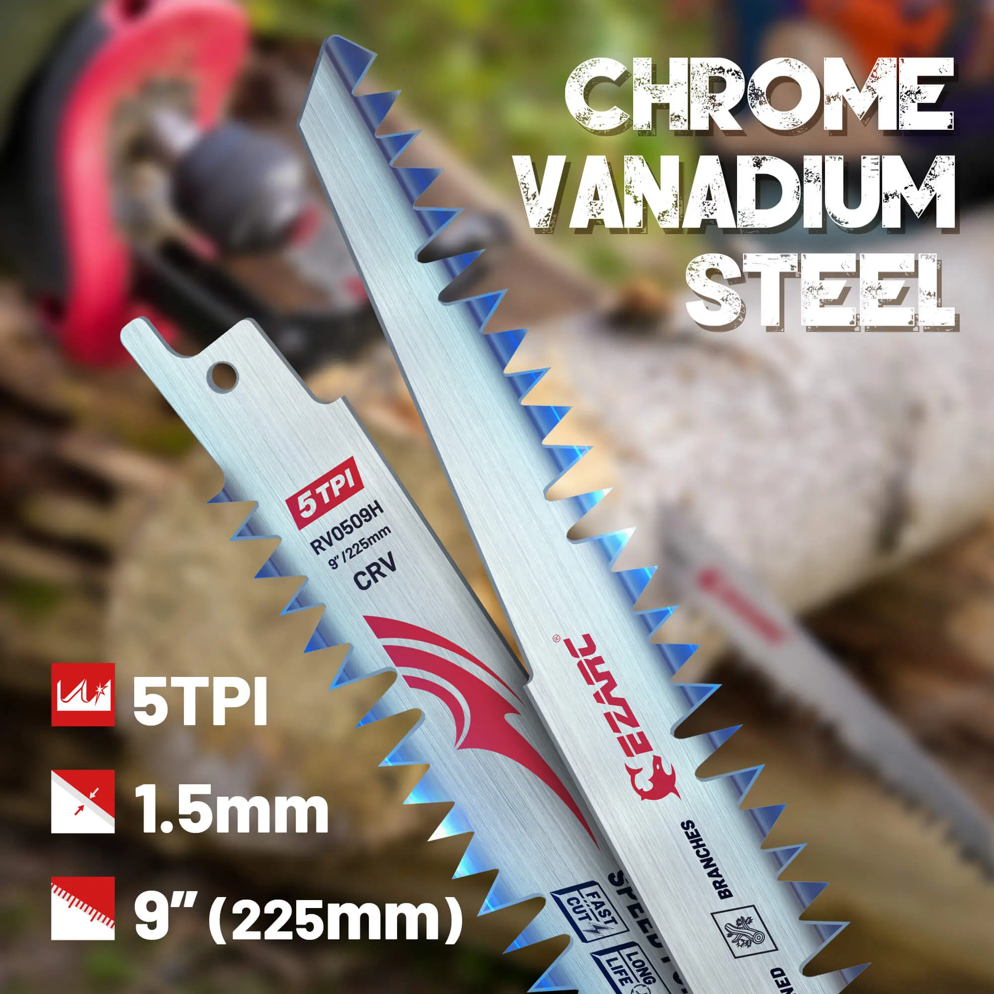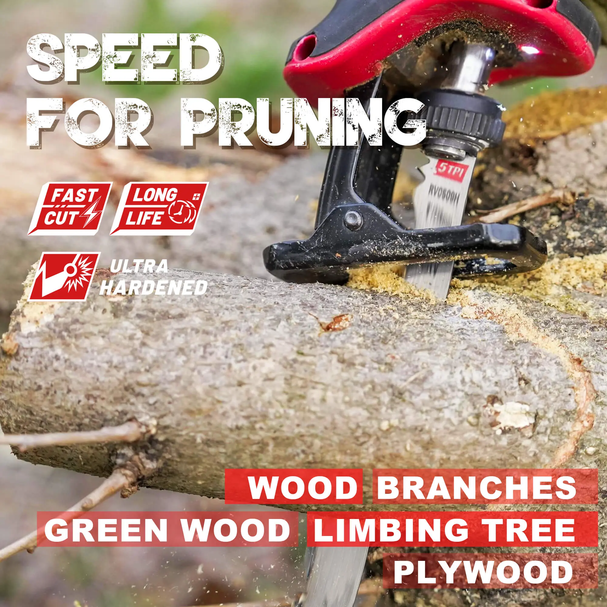 Powerful wood pruning blades for efficient pruning and landscaping tasks, such as pruning trees, cutting wet wood, and slicing plastic pipes. Its efficiency in handling wet wood and branch trimming. Not recommended for cutting wood with nails.