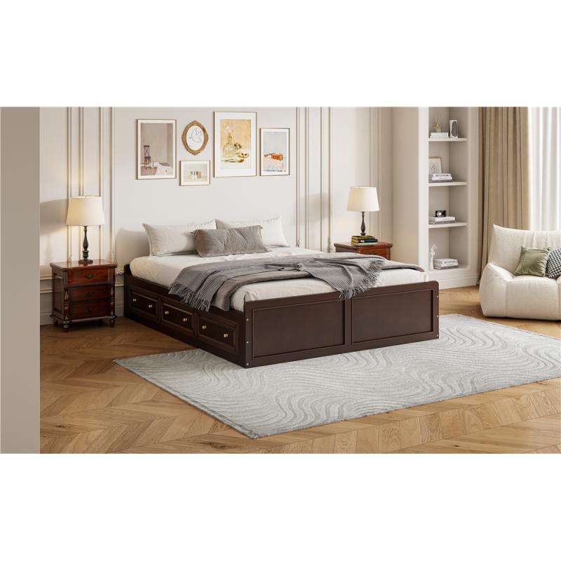 🌟 Wood Queen Size Platform Bed Frame with 6 Drawers, Espresso 🌟
