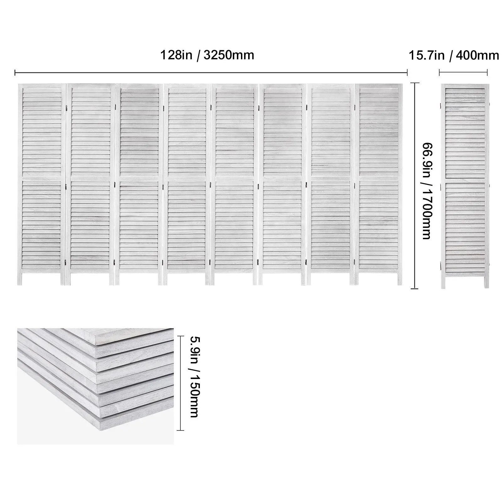 • European Classic Design: This 128-inch rustic room divider combines eight elegant European-style panels, offering ample privacy for any space. Its sleek louvered design serves both as a stylish screen and a decorative piece, effortlessly enhancing your home's aesthetic.