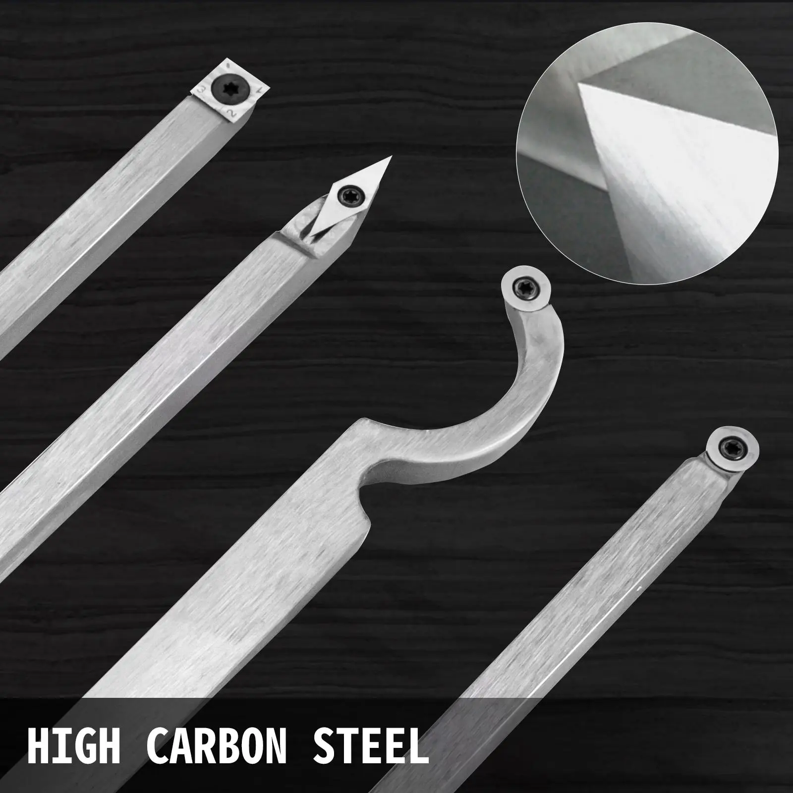 5. VEVOR Wood Turning Tools for Lathe 4 PCS Set, Carbide Lathe Tools with Diamond Shape, Round, Square Cutters, Turning Lathe Chisels with Comfortable Grip Handles Lathe Tools for Craft DIY Hobbyists