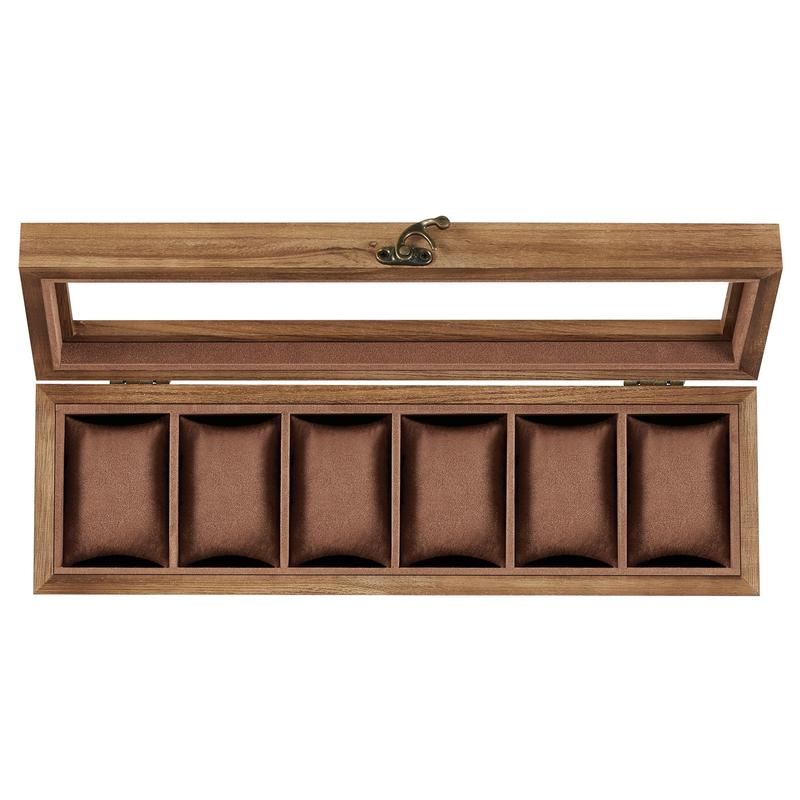 SONGMICS 12-Slot Wood Watch Box - Watch Case, Watch Box Organizer with Large Glass Lid, Watch Display Case with Removable Pillows, Gift for Loved Ones, Rustic Walnut UJOW120K01