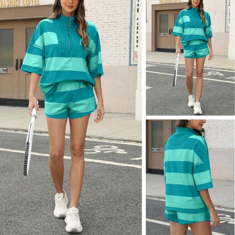 Material: This 2-piece workout set for women is crafted from a soft, breathable and skin-friendly, it will make you feel smooth, more soft and free. This vacation outfits for women is relaxed boxy fit, max out that stride and move freely.