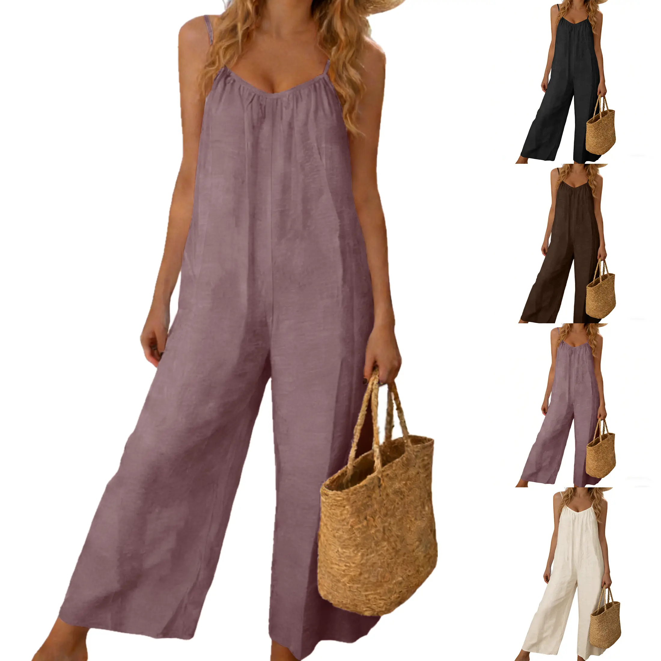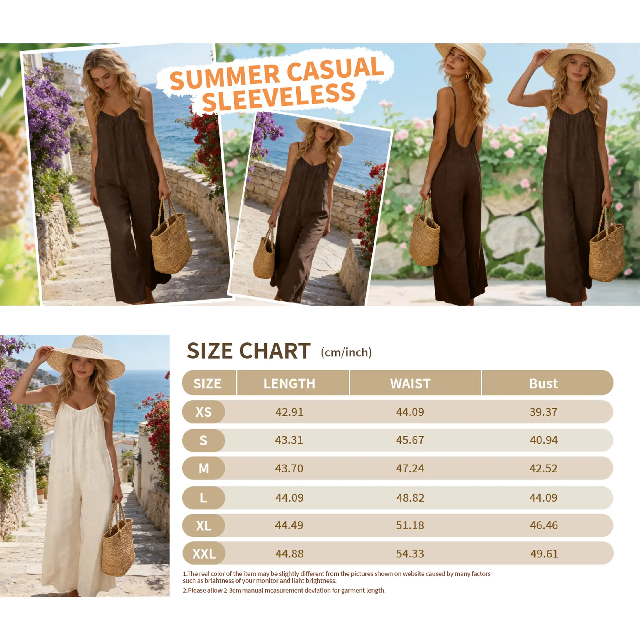 WoodBerry Women's Backless Spaghetti Strap Jumpsuit Summer Sleeveless Tie Back Long Wide Leg Romper with Side Pockets Casual Loungewear Outfit for Beach VacationsWoodBerry Women's Backless Spaghetti Strap Jumpsuit Summer Sleeveless Tie Back Long Wide Leg Romper with Side Pockets Casual Loungewear Outfit for Beach Vacations