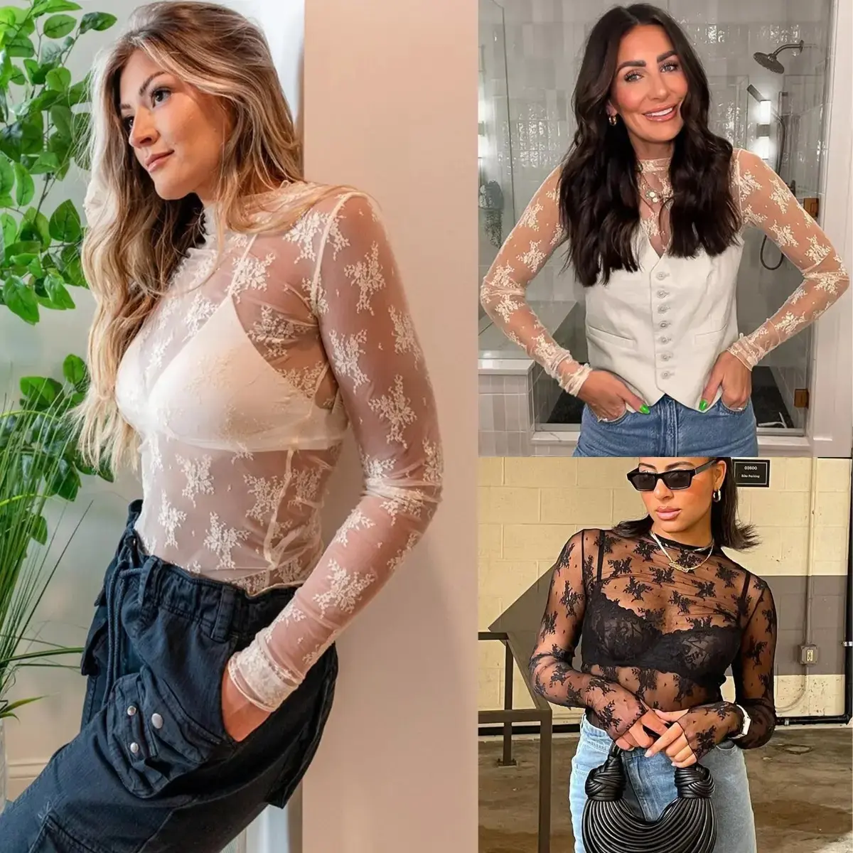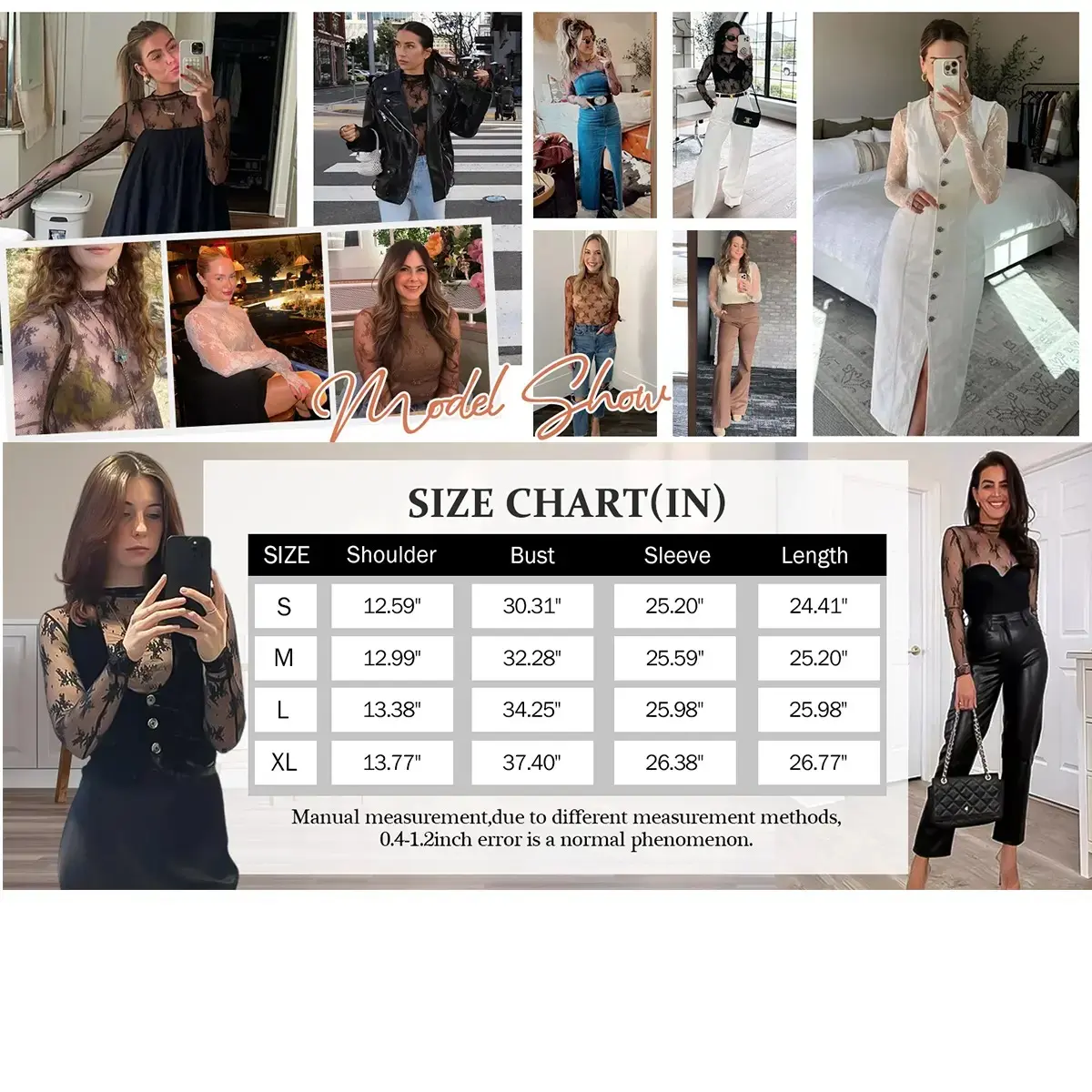 ·Material——Crafted from 95%Nylon、5%Spandex, this sheer mesh top offers comfort, breathability, and stretch. The premium lace fabric ensures a charming, elegant look. Perfect for layering, it fits various figures.