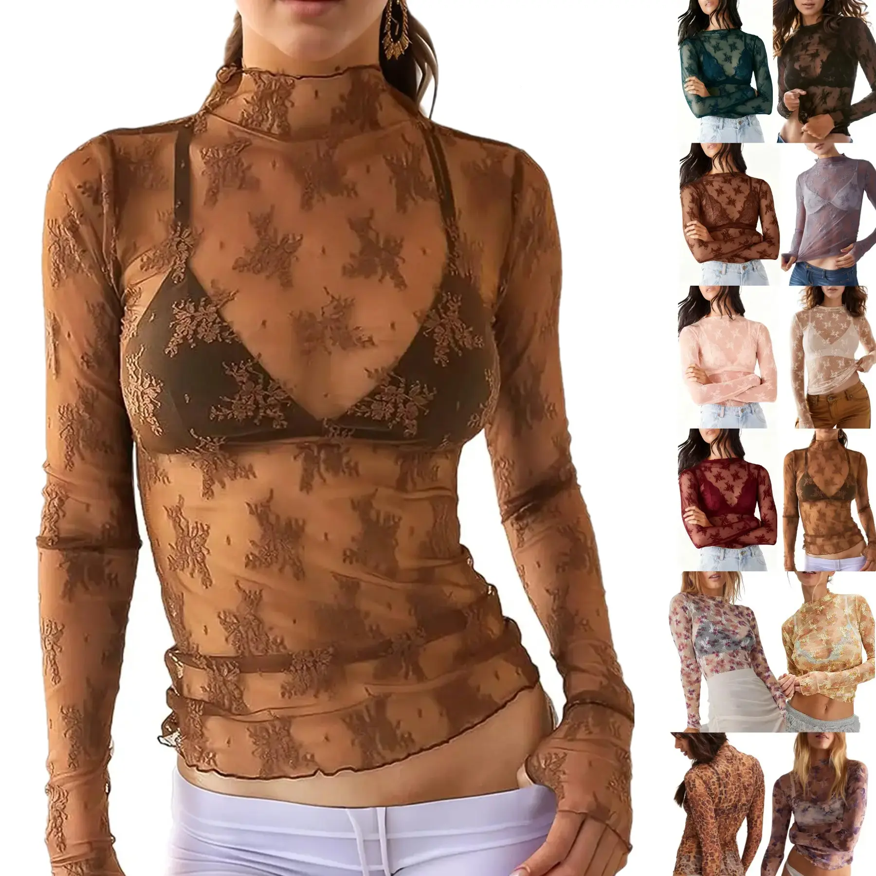 ·Features——Long sleeves with a cute mock neckline and floral embroidery. Ideal for women, girls, and ladies seeking a stylish, see-through top.