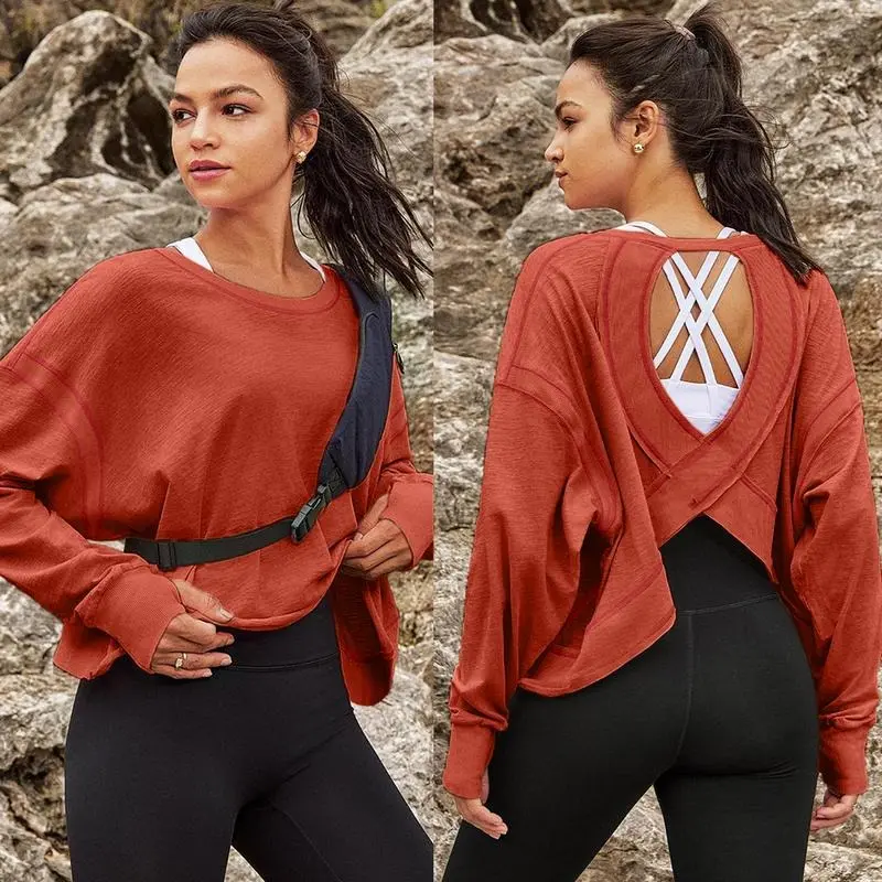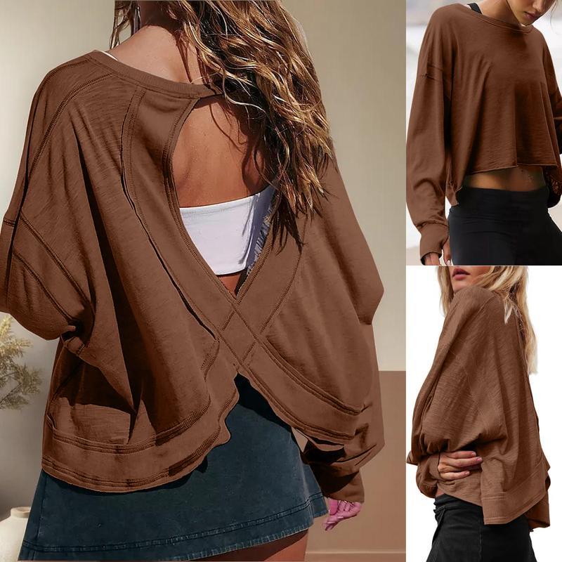 ·Features: Slight crop, shorter sides, wide neckline, open-cut back and ribbed wrist detail, the open back tops for women is fashionable and sexy, which increases the breathability, effectively dissipates body heat, and keeps cool and comfortable.