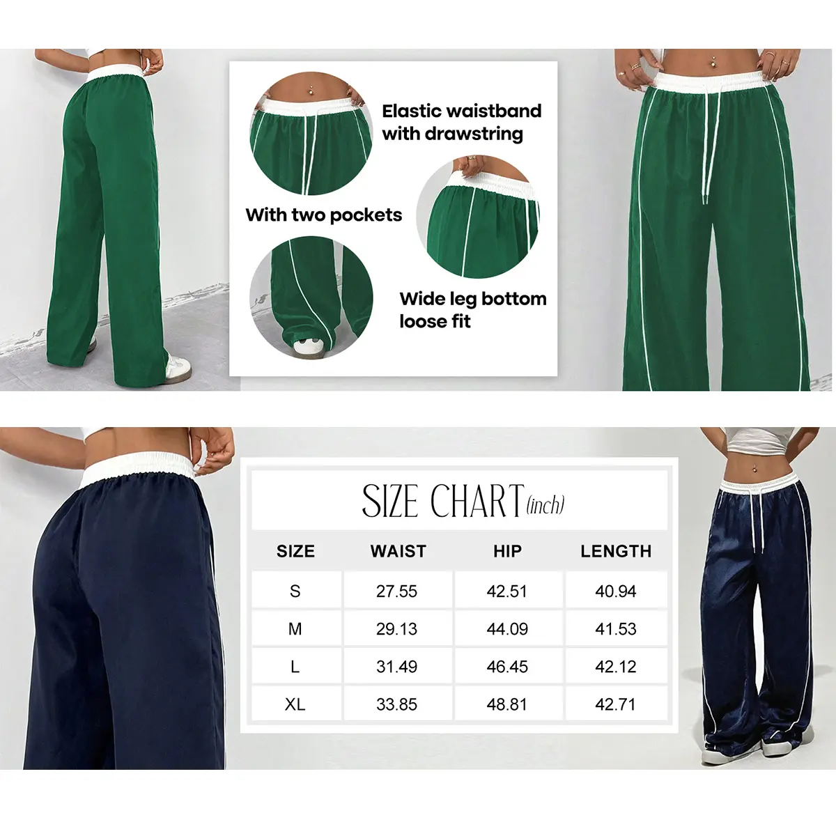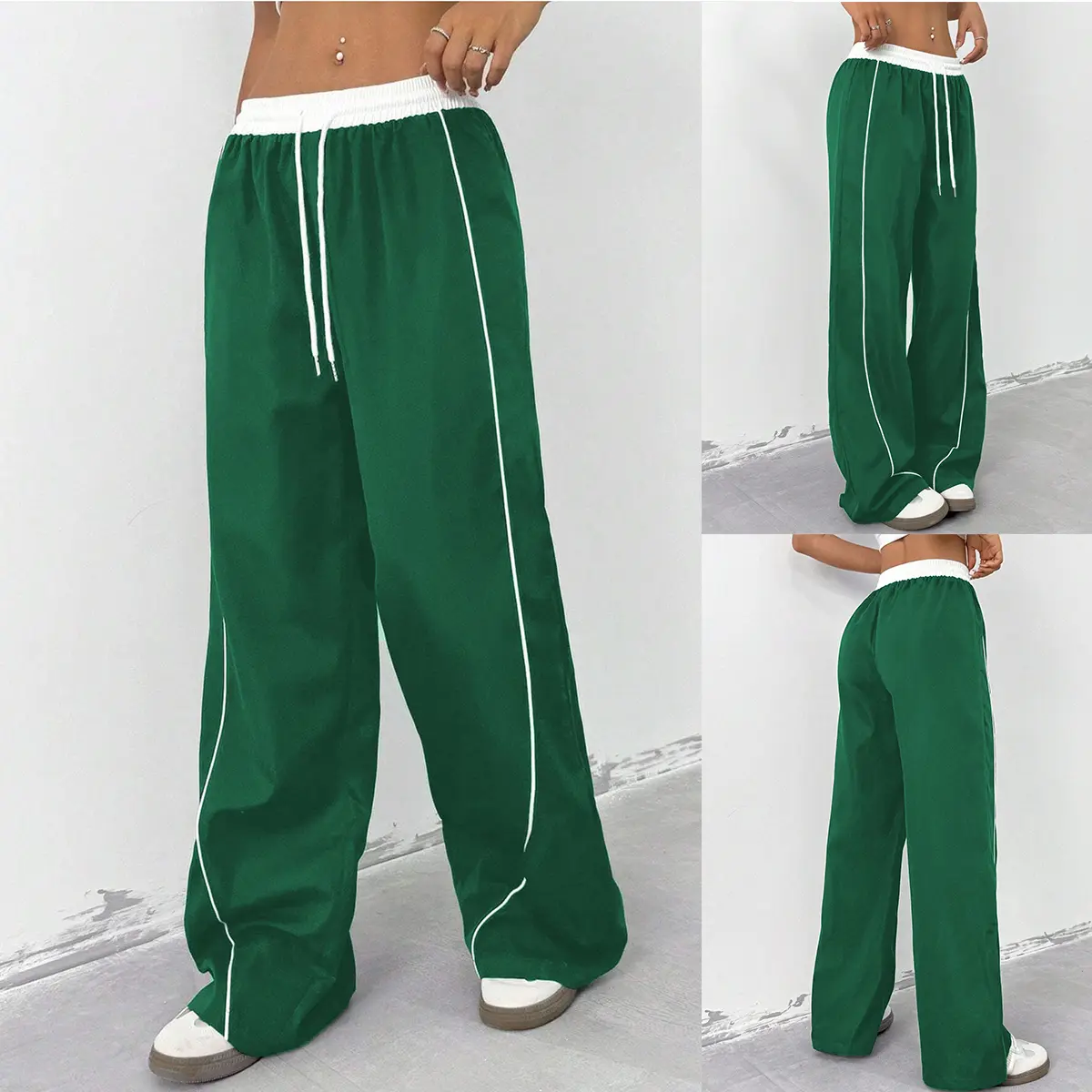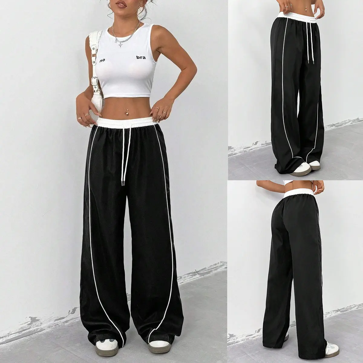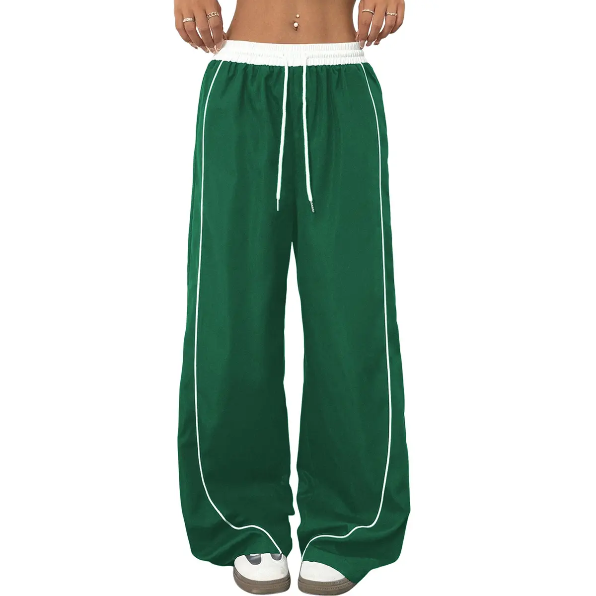 ·Trend-Driven Design - Elevate your streetwear style with high-waisted joggers featuring contrast white stitching and adjustable drawstring waist. The wide-leg track pants design boasts functional side pockets and a flattering silhouette that accentuates curves while ensuring maximum mobility. 🌟