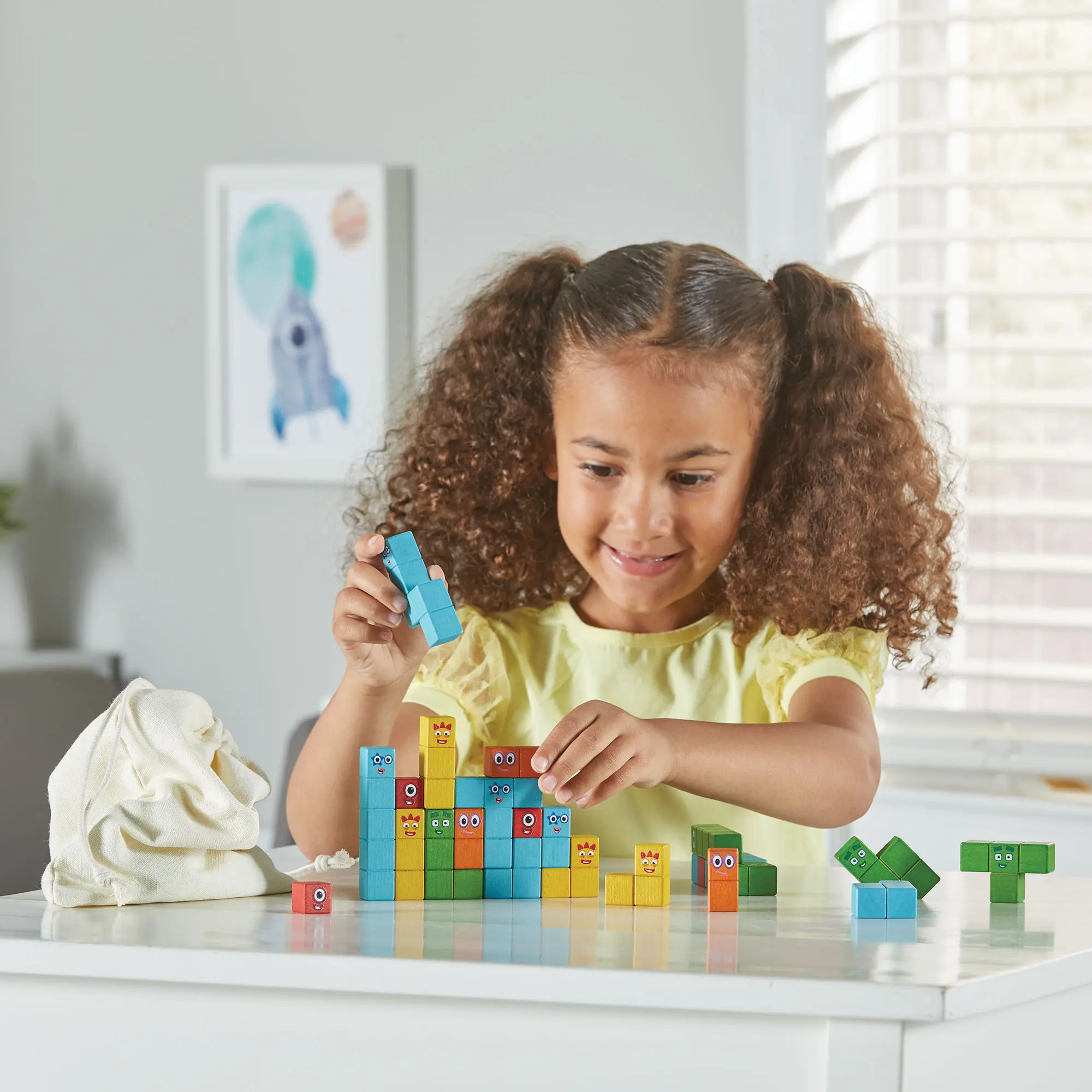 Explore problem-solving by counting and stacking Numberblocks. Build towers and create new shapes. This set includes 20 early math activities tied to episodes. It extends play with building challenges, making learning an engaging experience. Children will develop early math skills like counting, adding, taking away, and subitizing.