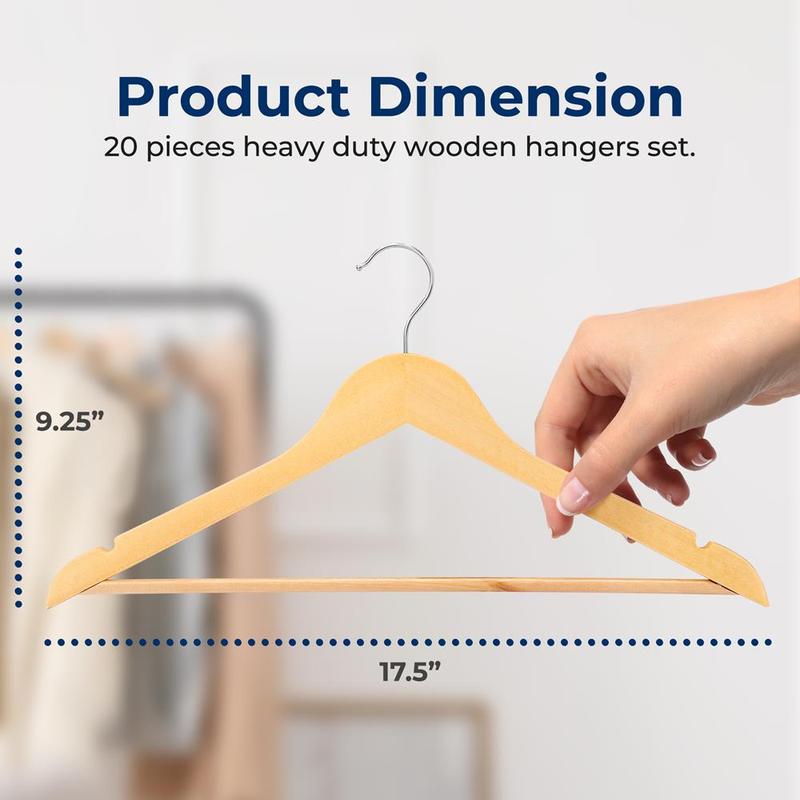 5. Wooden Coat Hangers 20 Pack, Durable 360° Swivel Hook, Natural Wood