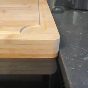 I grabbed this cutting board during a random flash sale, and it’s easily one of my best impulse buys. I get more compliments on it than anything else I’ve bought lately! We even use it over the sink for extra counter space, which has been a total game-changer.