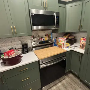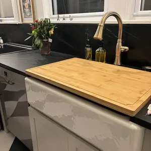 Beautiful and functional bamboo cutting board and cover for your oven. Helps to provide more countertop space, is an ample size cutting board that can be used for charcuterie or serving tray. Also can be used over the sink!