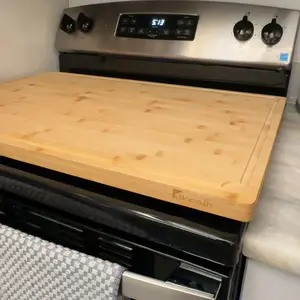 This four XL cutting board stove top cover is as described and everything I didn’t know I needed! It fits my five burner GE gas range perfectly. It arrived quickly and is right on time for the holiday season entertaining. If your kitchen has minimal countertop space, this is a cutting board stove cover is an absolute must. To my surprise it coordinates well with my cabinets. Exceptional value for the cost. Love it!