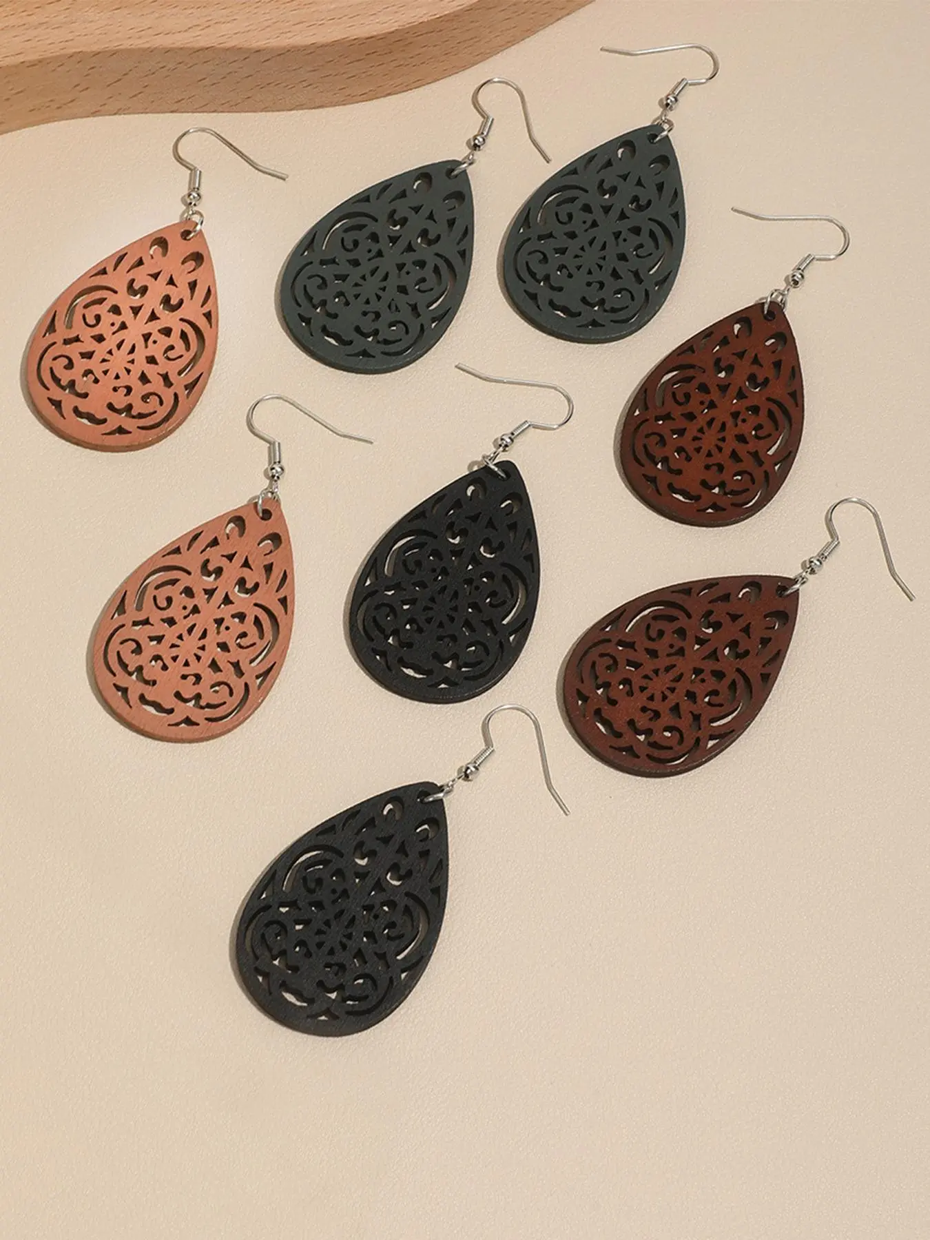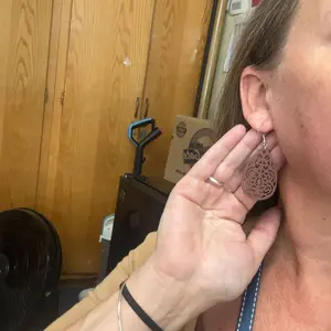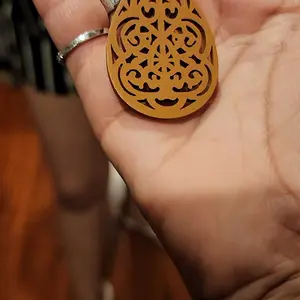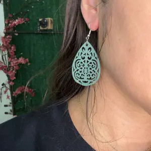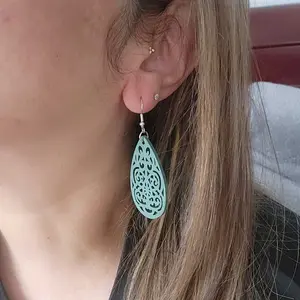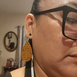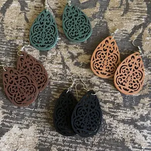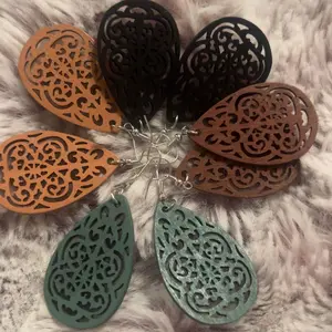 These beautiful wooden laser cut earrings are lightweight and can be easily matched up with anything. Dress up your casual look. Or, wear with a dress for your special night out.