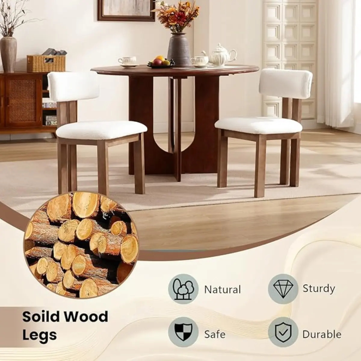 [Classic Appearance] The unique curved open-back design and vintage-colored wooden structure give this dining chair a distinctive charm. The natural wood grain showcases the beauty of nature, providing a sense of natural comfort, making it perfect for decorating vintage home designs.