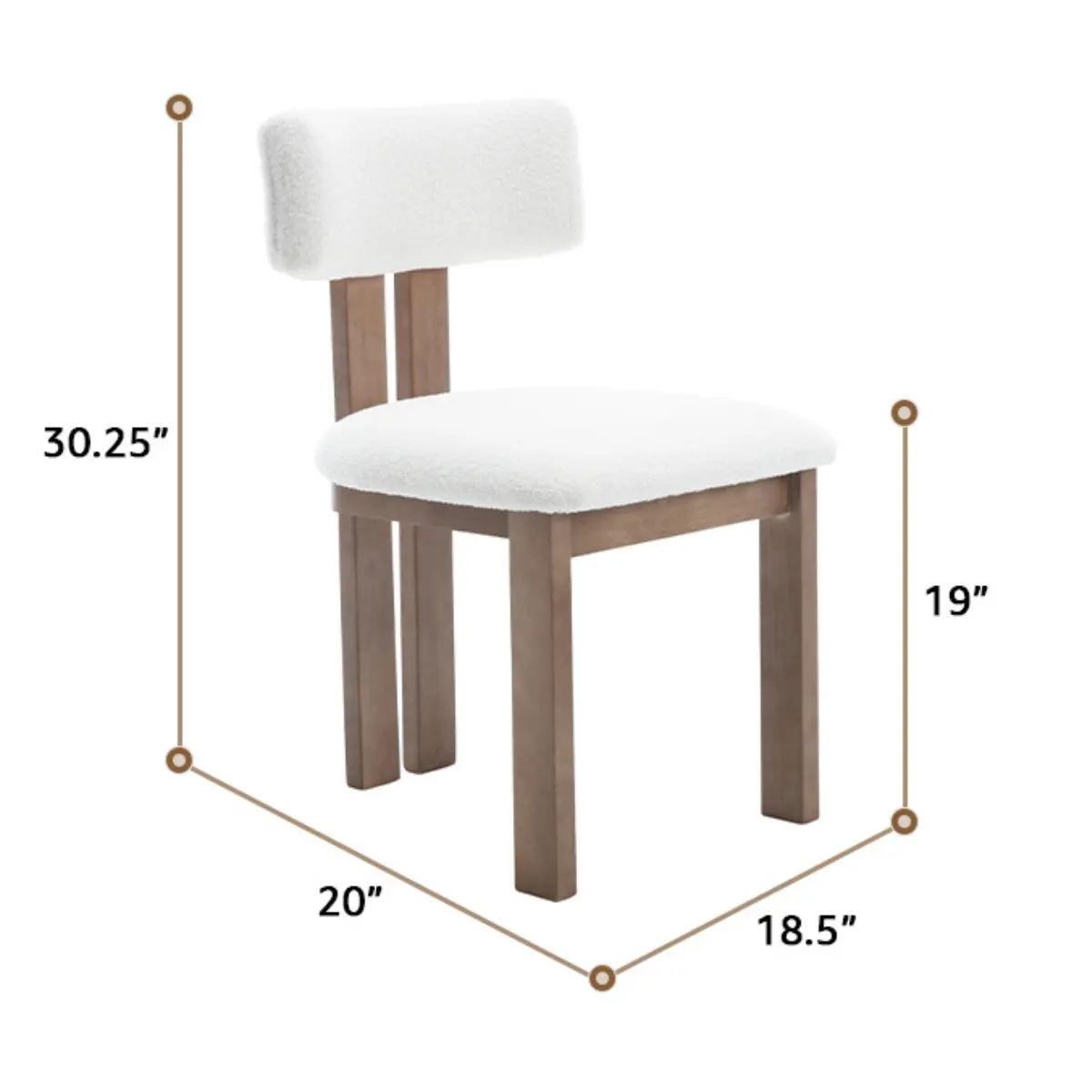 [Overall size] 18.5”Wx20”Dx30.25”H. Seat size: 18.5”W x 18.25”D. Seat height: 19”H. Backrest length: 12.5”H. Weight capacity: 300 lbs.