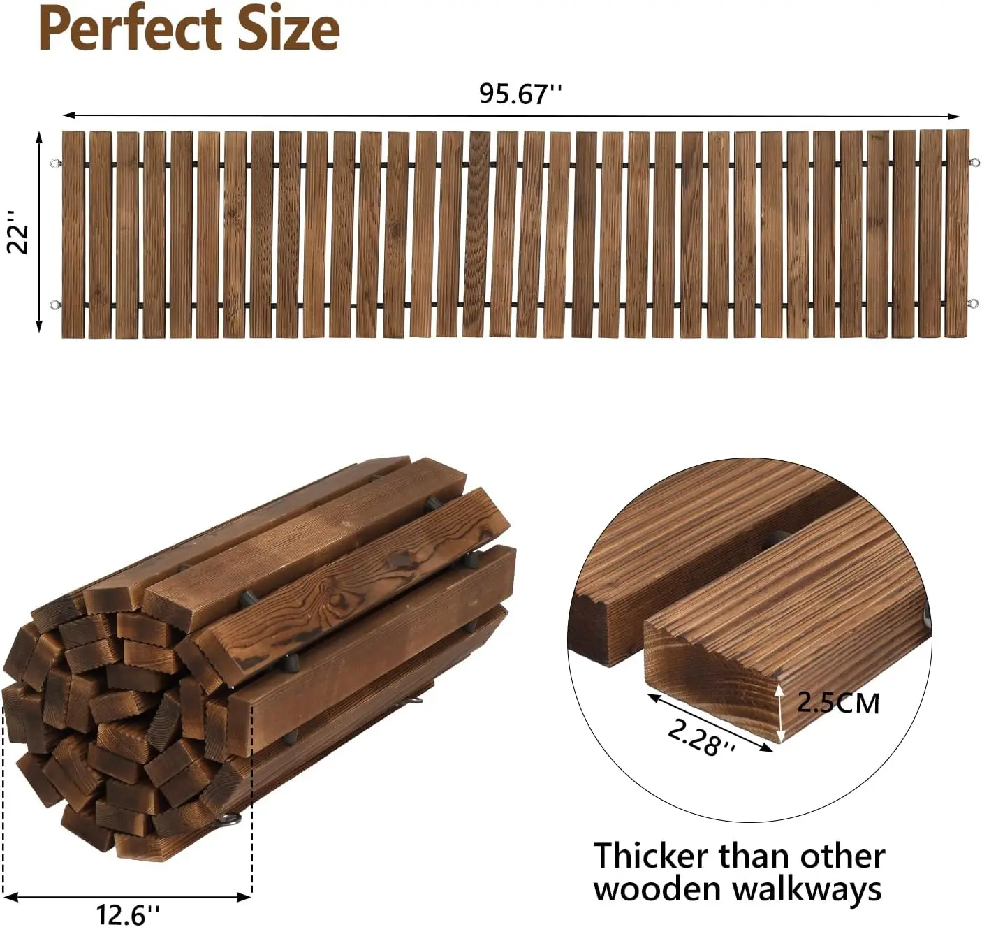VINGLI Oversized 22IN W 8FT L Wooden Garden Pathway for Outdoors, Roll Out Garden Pathway Walkway Flooring W/Steel Wire, Anti-Slip Texture, Ground Stakes, Outside Walkway for Patio, Wedding