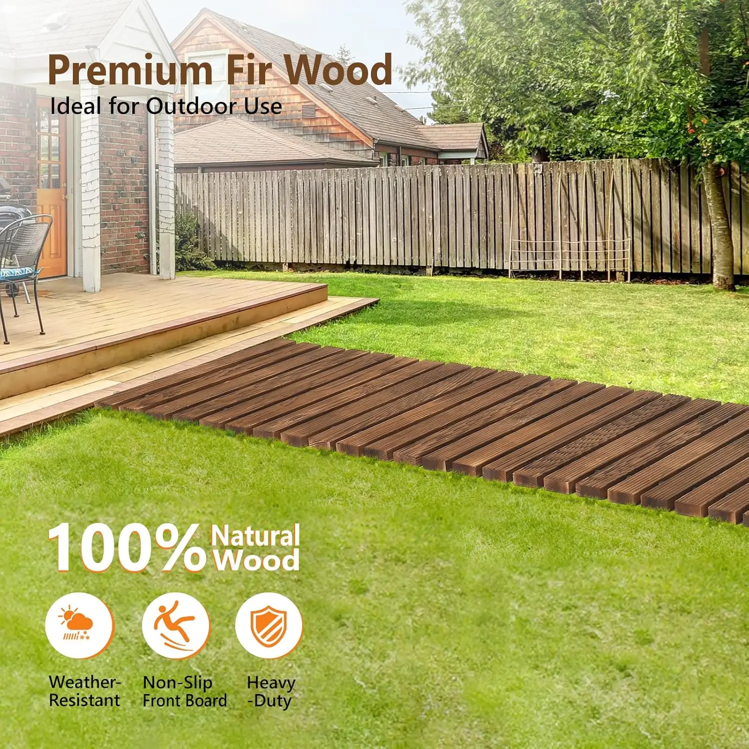 5. VINGLI Oversized 22IN W 8FT L Wooden Garden Pathway for Outdoors, Roll Out Garden Pathway Walkway Flooring W/Steel Wire, Anti-Slip Texture, Ground Stakes, Outside Walkway for Patio, Wedding