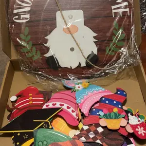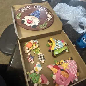 It came with some damage to the package and 2 of the magnets had fallen off the 2 of the summer hats. I replied so will see if that fixes it. Otherwise I love it! The two turned over so you see the wood were the 2 without magnets. Luckily the magnets were still in the box.