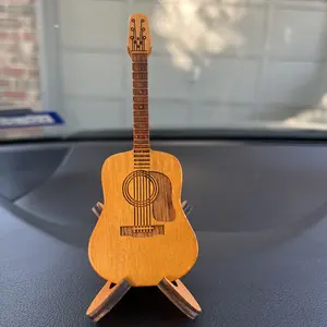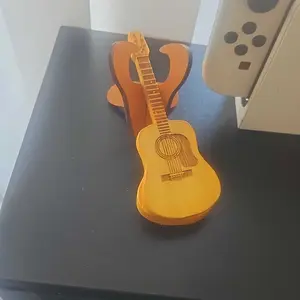Very cute guitar. The stand is pretty cheaply made but the actually guitar is wooden and nice :) I wrote on the 3 picks for my bf valentine gif he liked it.