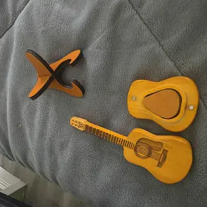 It was everything I expected it to be, nice smoorh sand finish great gift for guitar lovers magnetic 🧲 tabs to I close the 3 picks came a little later than expected so don't wait to order!