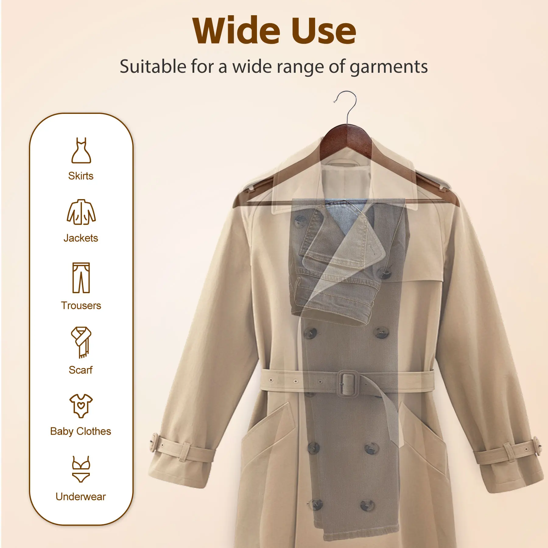 Built for strength, these hangers easily support heavy jackets and sweaters while maintaining their shape.