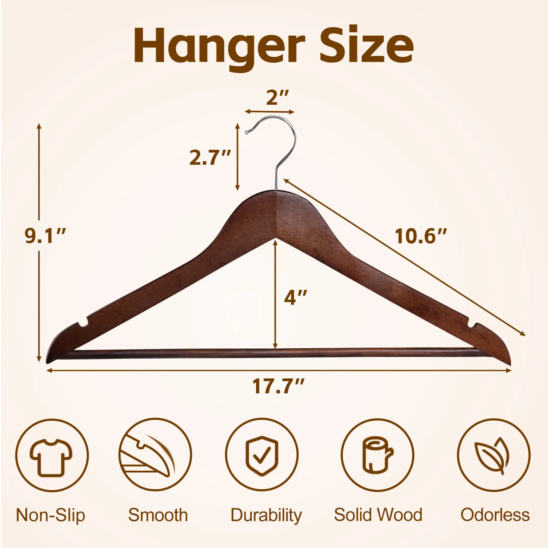 Each Hanger Sizes: 17.7" x 9.1" x 0.5"