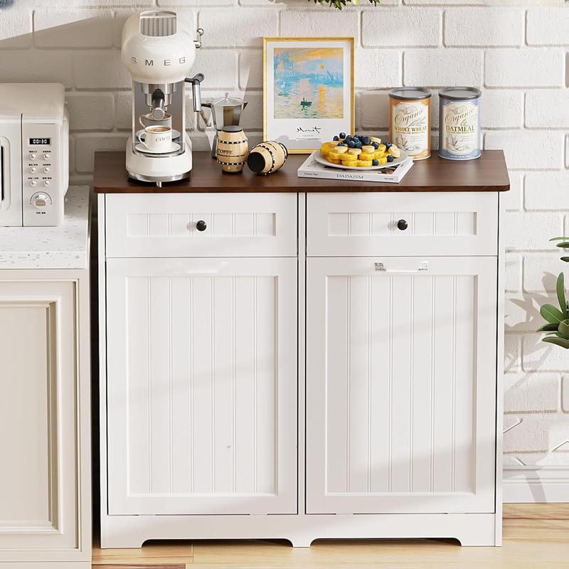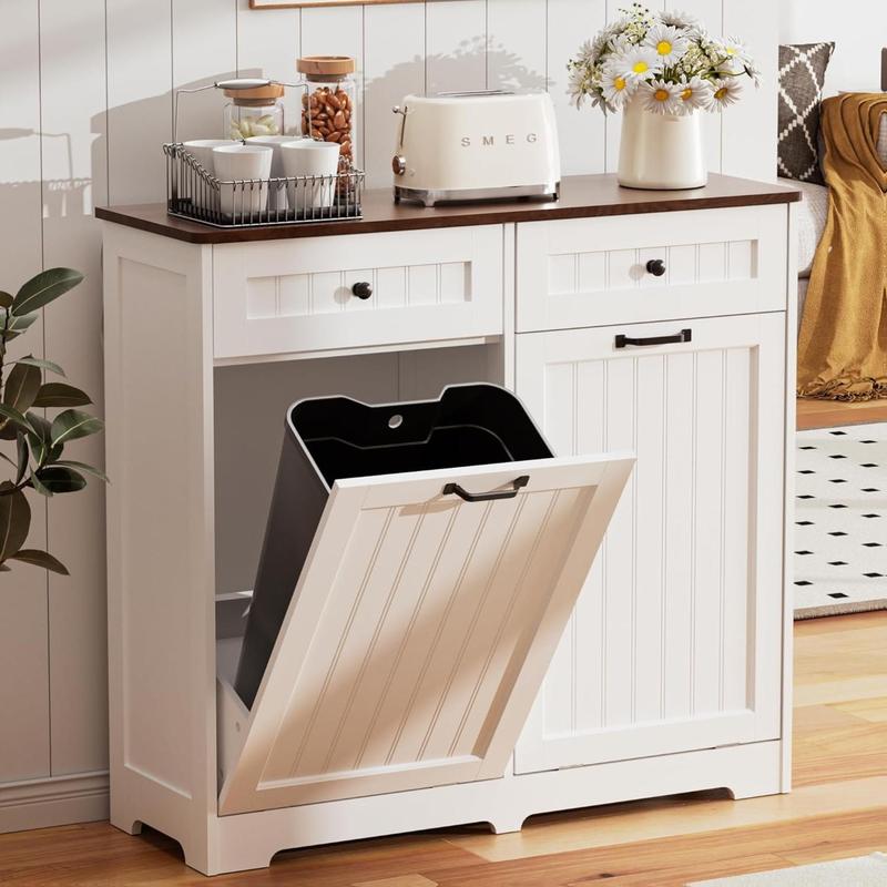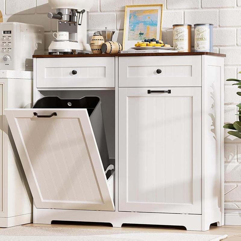 ·Sturdy and Durable: The Tilt Out Trash Can Cabinet is crafted from high-quality medium-density fiberboard (MDF), making it easy to clean and built to last. It provides a dependable storage solution for your needs.