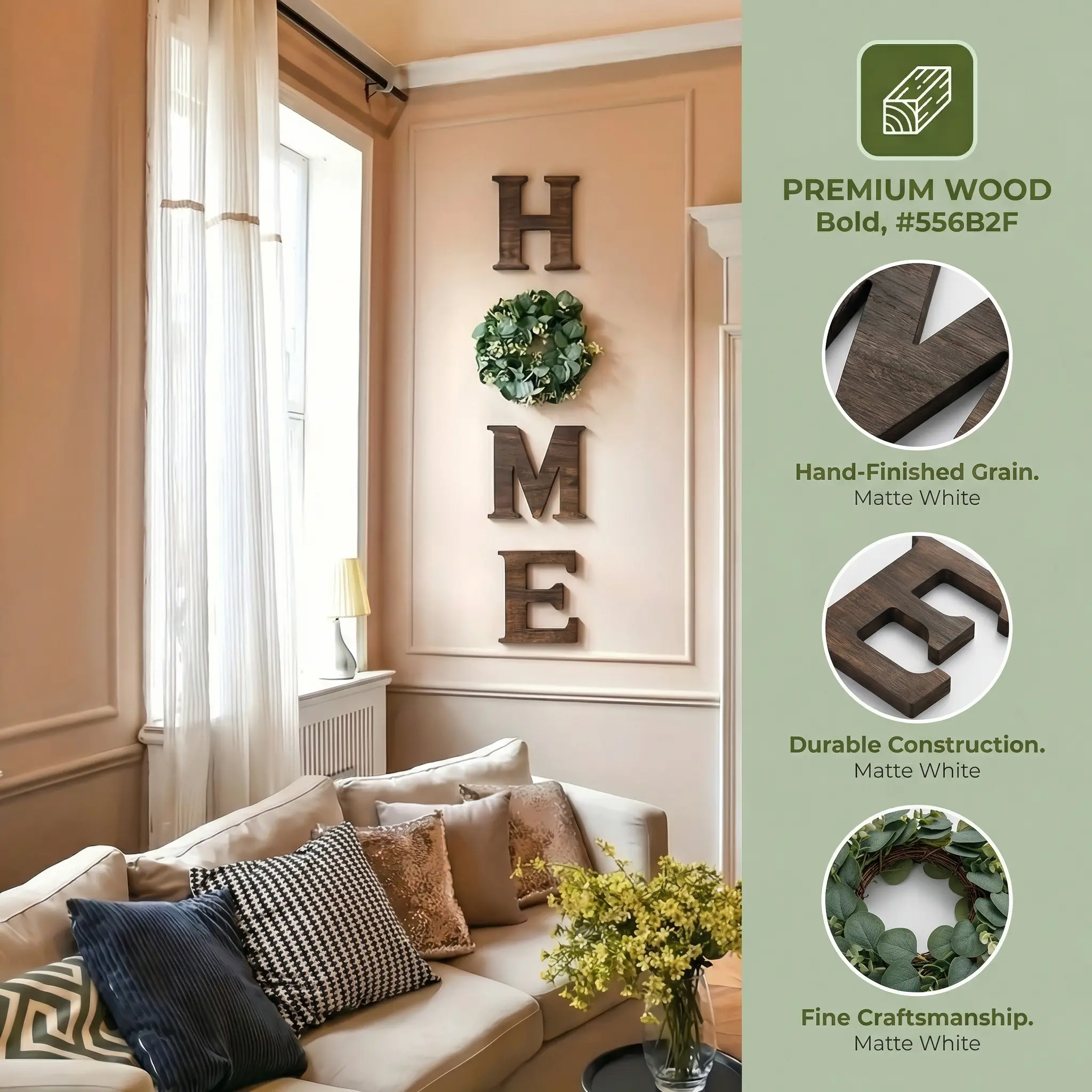 Wooden "HOME" Wall Decor with Artificial Wreath | Modern Farmhouse Front Door Sign | Aesthetic Entryway Welcome Hanger | 2026 Home Refresh Essential