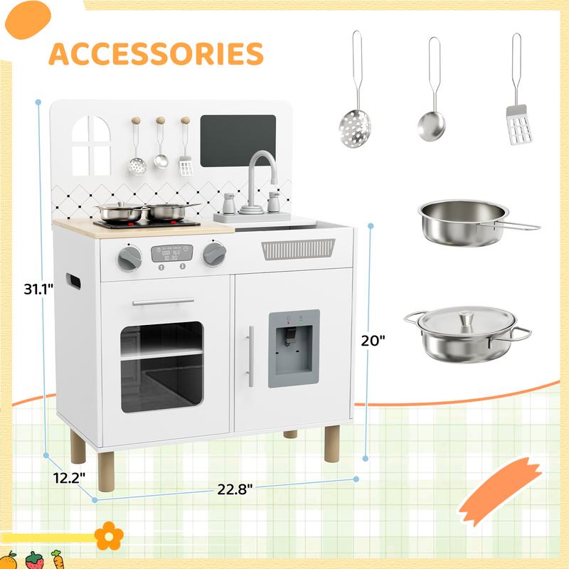 ·EASY ASSEMBLY & LOW MAINTENANCE: Kitchen playset (22.8"L x 12.2"W x 31.1"H) is designed for straightforward assembly with clear instructions, and features easy-to-clean surfaces with removable parts for hassle-free upkeep. Its space-saving freestanding design blends seamlessly into any room while keeping playtime tidy and enjoyable