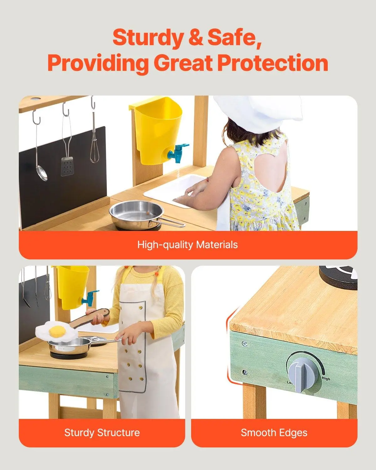 Wooden Mud Kitchen Outdoor Toy Play Kitchen Set for Kids Pretend Playset