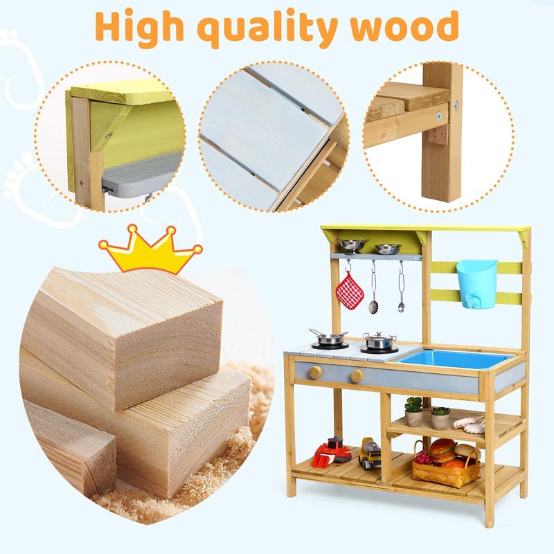 GARVEE Wooden Play Kitchen for Toddlers and Outdoor Use with Stove Top, Rotatable Knob, Water Box, Faucet, and Removable Sink - Pretend Play Toy for Boys and Girls