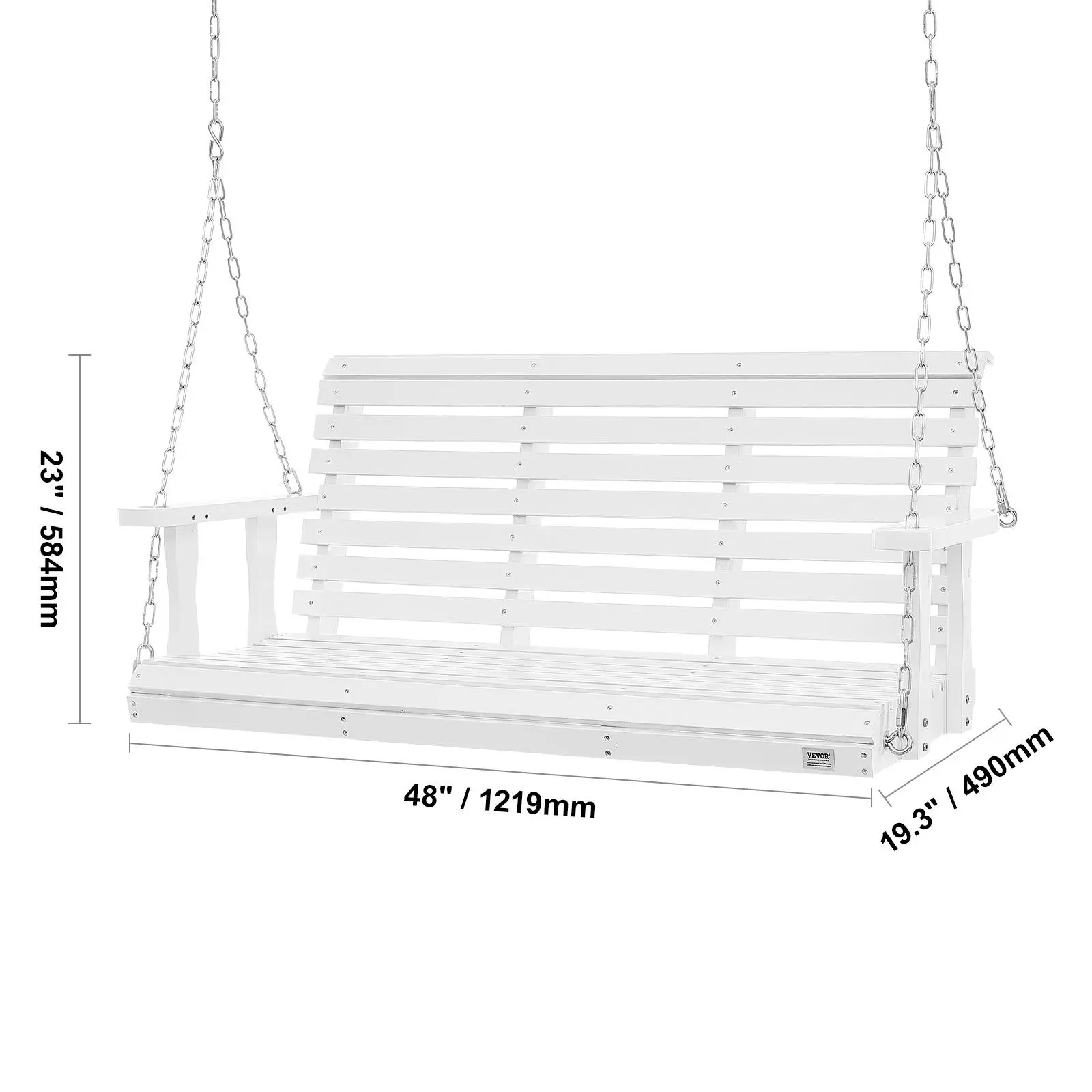• Classic Design: The timeless combination of solid wood and metal chains adds a touch of retro charm to your porch swing. Overall dimensions: 54 x 28 x 23.6'' (1370x710x600 mm); seat dimensions: 48x19.3x23'' (1219x490x584mm), comfortably accommodating 2-3 people.