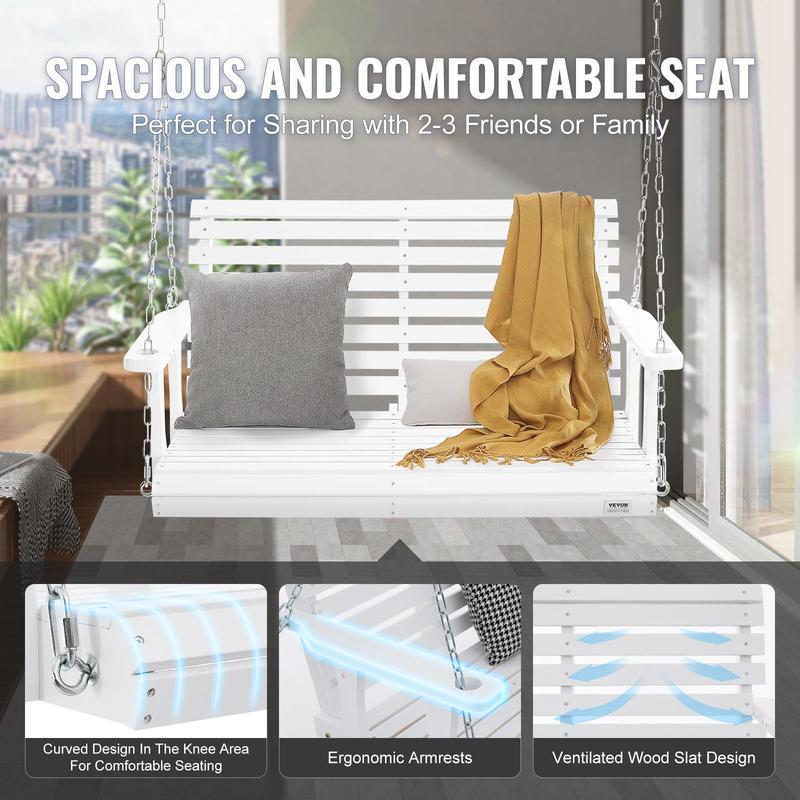 • Sturdy & Stable: Crafted from pure fir wood and supported by galvanized steel chains, our porch swing ensures durability and stability. With a weight capacity of up to 880 pounds, it's built to last and remains steady throughout use.