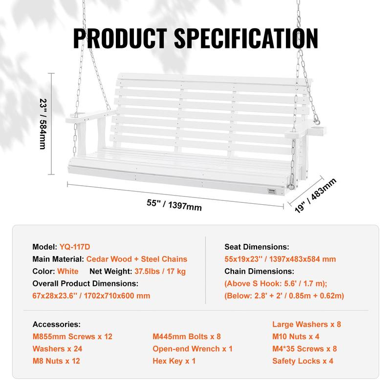 • Classic Design: The timeless combination of solid wood and metal chains adds a touch of retro charm to your porch swing. Overall dimensions: 67x28x23.6''/1702x710x600 mm; seat dimensions: 55x19x23''/1397x483x584mm, comfortably accommodating 2-3 people.