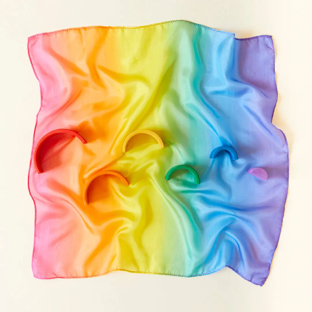 Pairs beautifully and styled with our Mini Rainbow Playsilk. Measures: 4" long, 2" tall, and 1.75" wide. Safe & fun for ages 3+