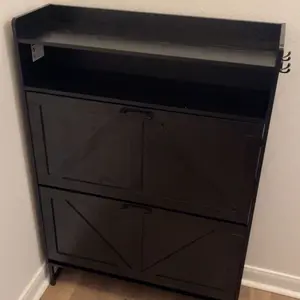 ·Premium Flip Shoe Cabinet:Shoe cabinet is crafted from high-quality MDF wood, ensuring long-lasting durability and stability. It features robust metal legs for added support and stability. Equipped with an anti-tip device, this entrance shoe cabinet can be securely anchored to the wall, effectively preventing tipping from external forces. This combination of quality materials and thoughtful design guarantees a safe and long-lasting storage solution for your shoes.