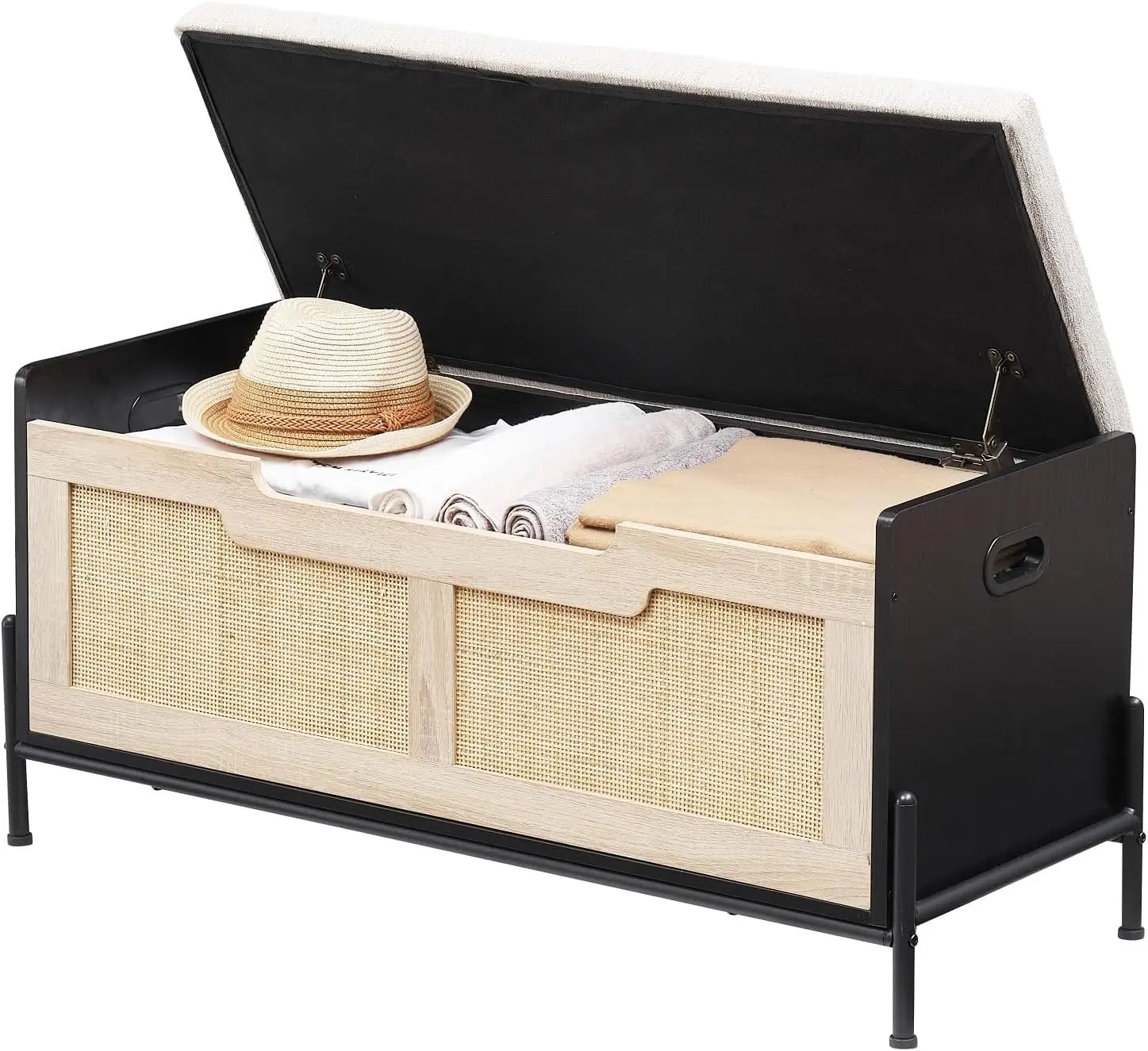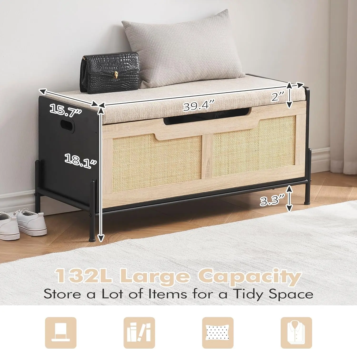 ·Ergonomic Side Handles: Wide, comfortable cut-out side handles make it effortless to relocate this versatile bench wherever you need extra storage or seating – bedrooms, entryways, or living rooms