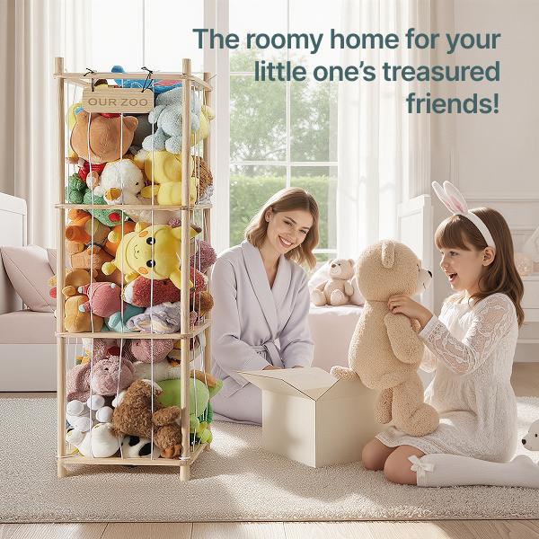 ·【Creative & Personalized Gift】Combining storage, organization, and display, this creative stuffed animal zoo includes a wooden nameplate for personalization. A thoughtful and practical gift that adds fun, creativity, and organization to any child’s room.