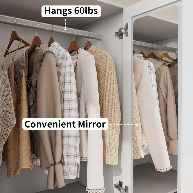 Compré este armario hace unas semanas y hasta ahora ha cumplido perfectamente con mis expectativas. Tiene un diseño moderno y elegante, ideal para habitaciones medianas o pequeñas gracias a sus puertas corredizas que ahorran espacio. Está hecho de melamina, lo cual lo hace fácil de limpiar y bastante resistente al uso diario.