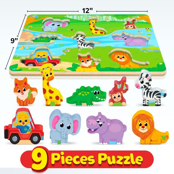 • 9 jumbo animal puzzle pieces (8 animals + 1 Lucas character)