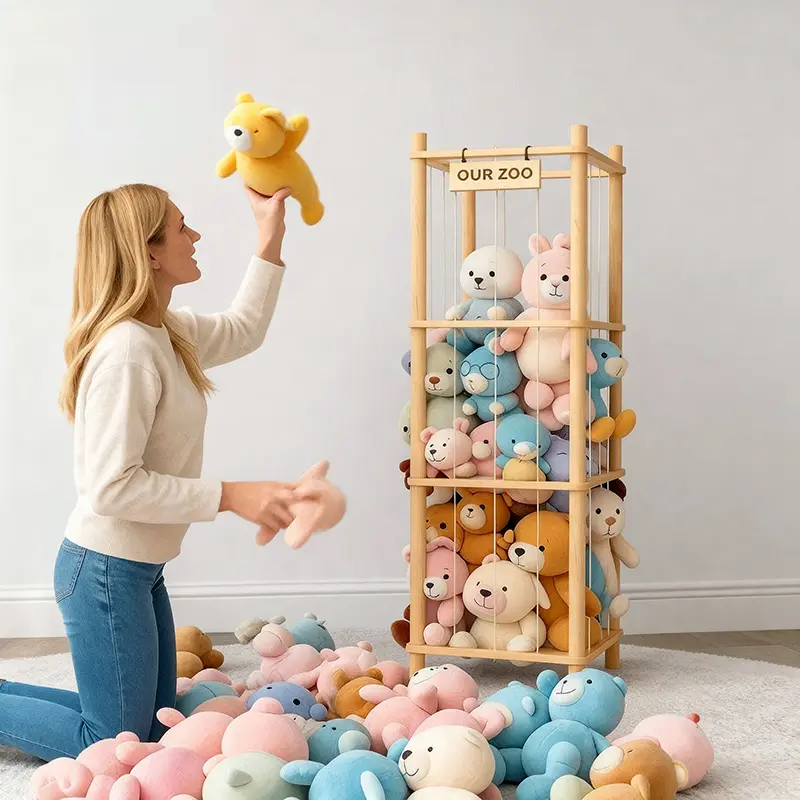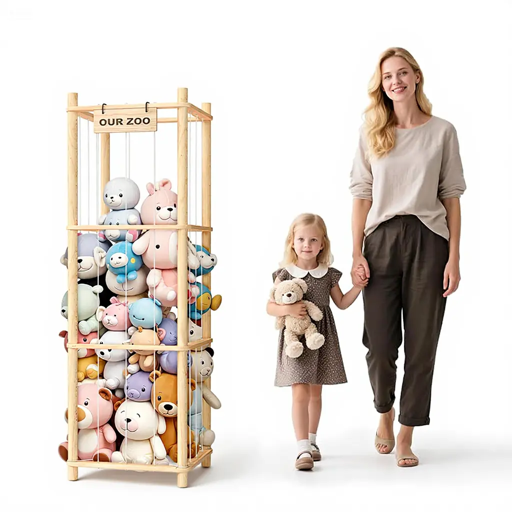Combining storage, organization, and display, this organizer is an ideal gift for children. It includes a wooden nameplate for personalization. Kids can create their own stuffed animal zoo, adding fun and creativity. This makes it a thoughtful present for young users. 🎁