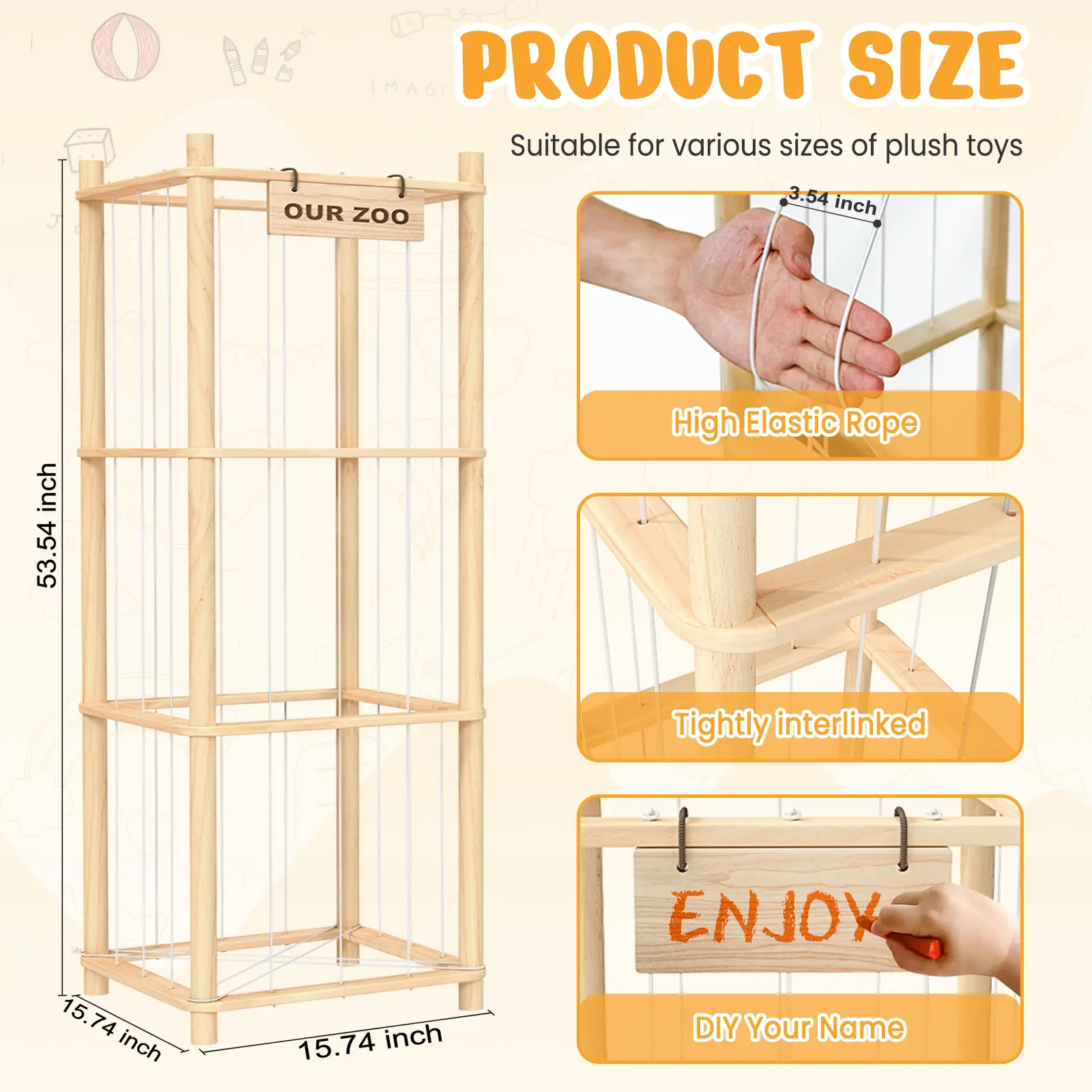 🐱 Woodure Stuffed Animal Storage Zoo 🐱