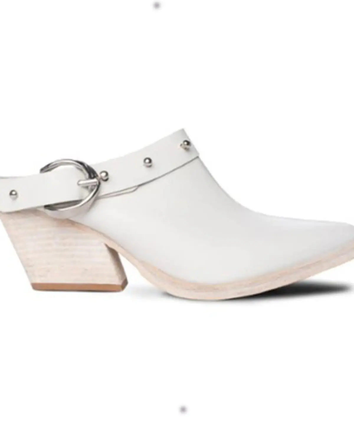 Leather upper. Studded buckle shaft trim. Slip-on design. Leather lining. Chrome grommets. Stationary slingback closure. 2" stacked western heel. Made by hand in Brazil. Solid white design.