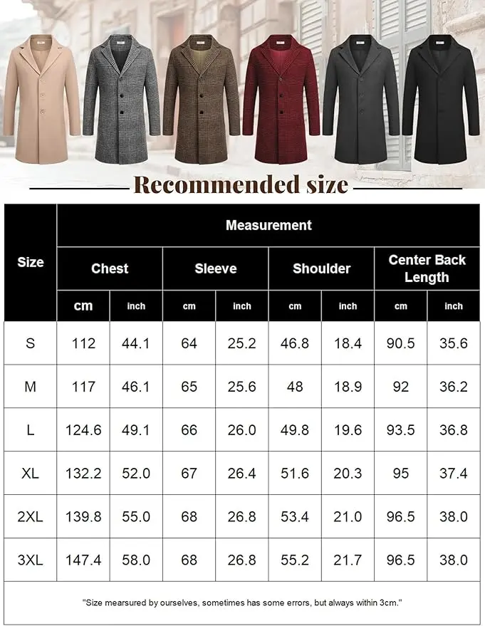 ·MODERN & TIMELESS - You are looking at truly amazing Men's Winter Slim Fit Overcoat that will take you through the winter with style and confidence. This Fashion Plaid Coats designed with turn down collar and two side pockets, back adopt streamline design make wearer look taller and upright, long regular fit dress coats woolen overcoat.