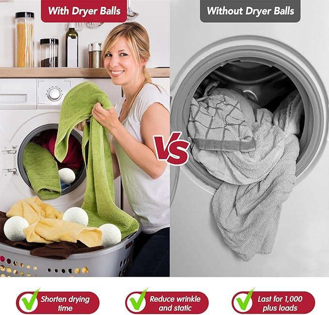 By increasing drying efficiency by over 30%, these dryer balls reduce drying time and energy usage. For small to large loads, they help your laundry dry faster, cutting down on energy costs.