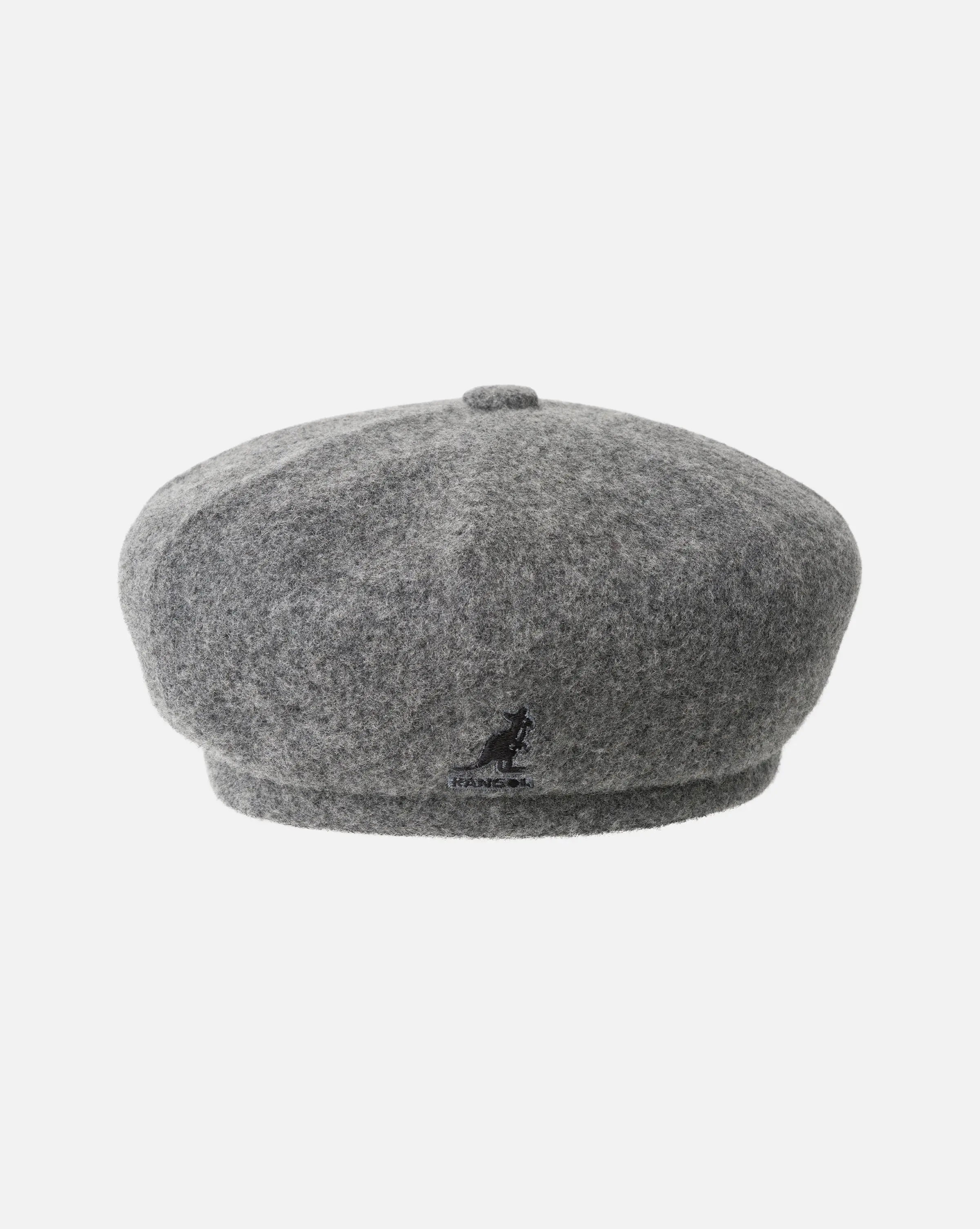 The Wool Jax Beret was created by removing the bill off of the iconic Wool Spitfire.  It has blocked impressions creating 8 quartered panels on the crown with a fillet at the base. The volume of the beret means that it can be styled in multiple ways. It can also be worn with the Kangaroo logo at the front or the back.  Complete with wool button at top.