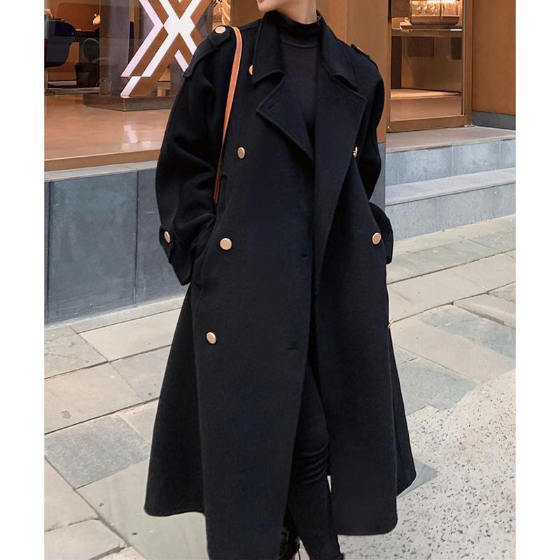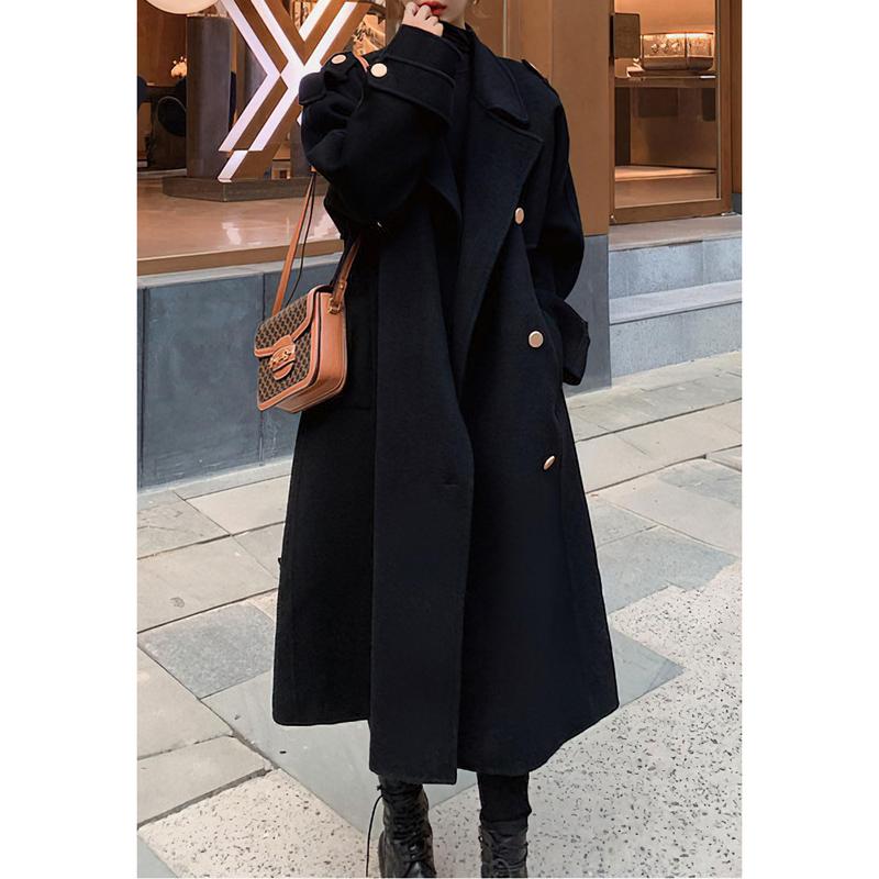 ·Midi long wool coat for women featuring double breasted button down placket, classic notch lapel, long sleeve with buttoned cuff, drop shoulder with epaulets, back flap and split, below knee length,