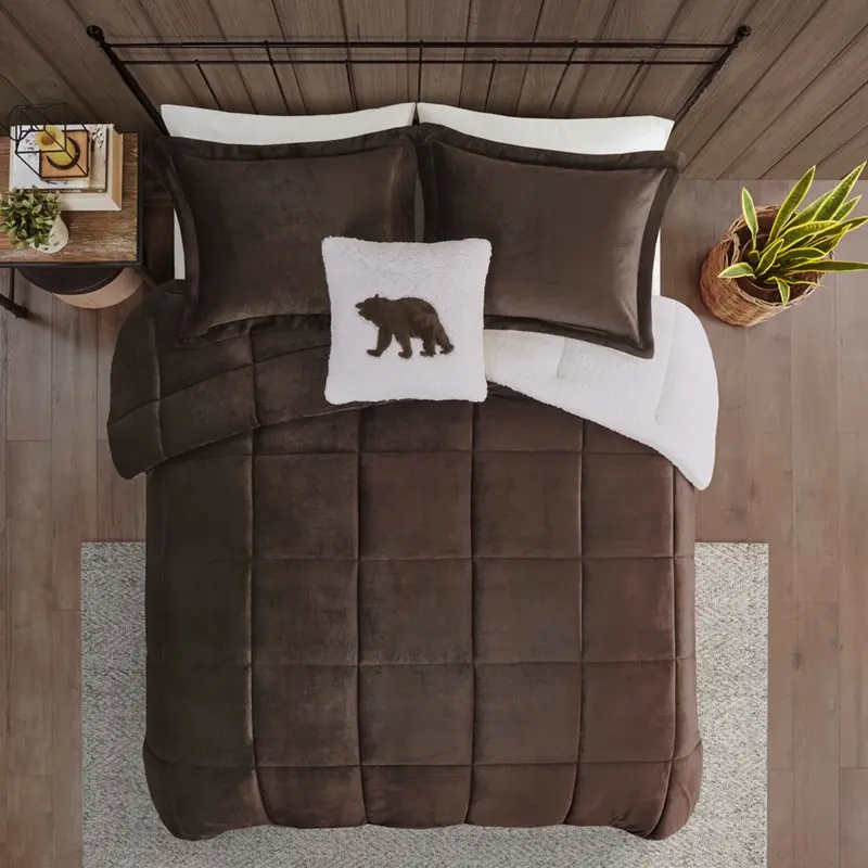 5. Woolrich Ultra-Soft Plush to Sherpa 4 Piece Reversible Comforter Set with Matching Sham & Decorative Pillow for Cold Weather Winter Warmth