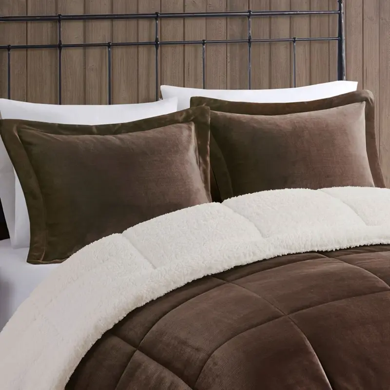 So cozy and warm, this 3 piece Woolrich Sherpa set will keep you warm and comfy all winter long! #sherpacomforter #woolrich #cozyhome #warmvibes